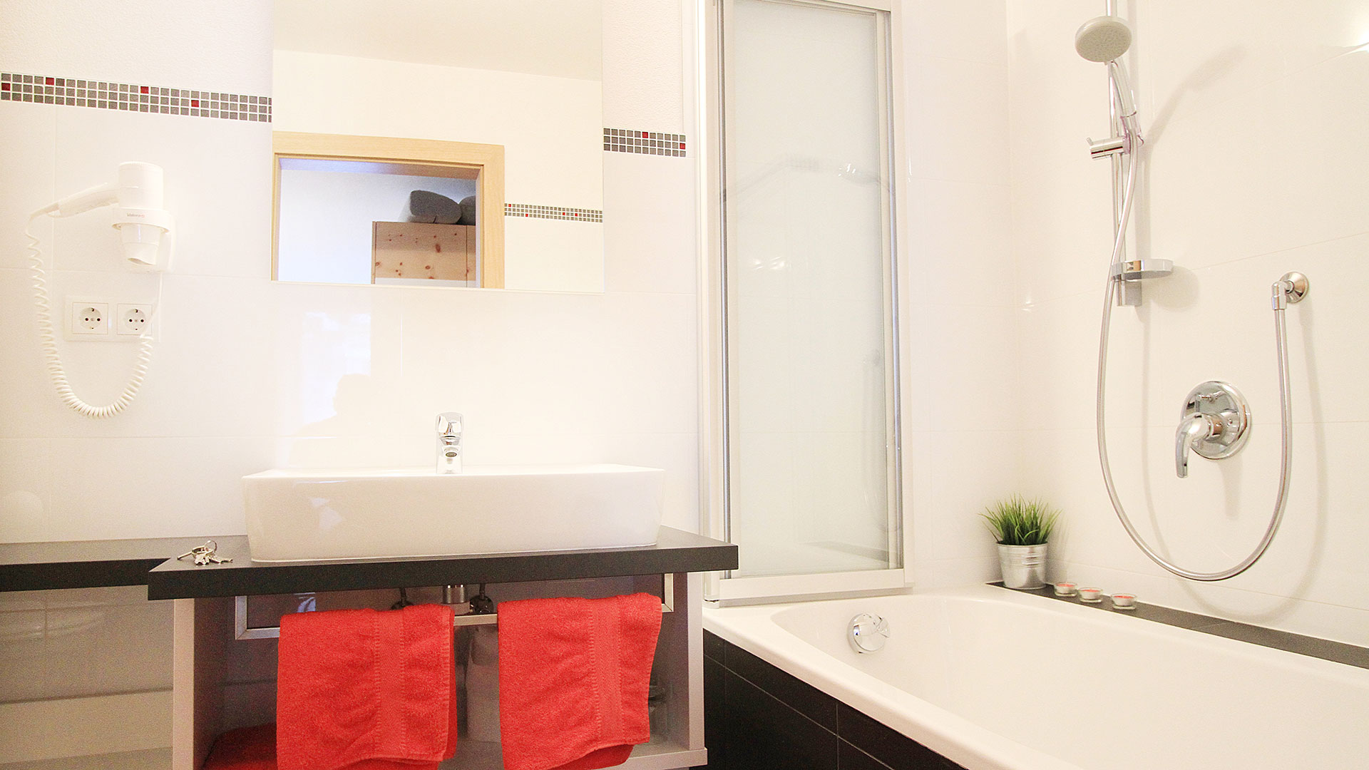 • Badezimmer mit Dusche / Badewanne, Haartrockner, Seife, Duschgel / Shampoo