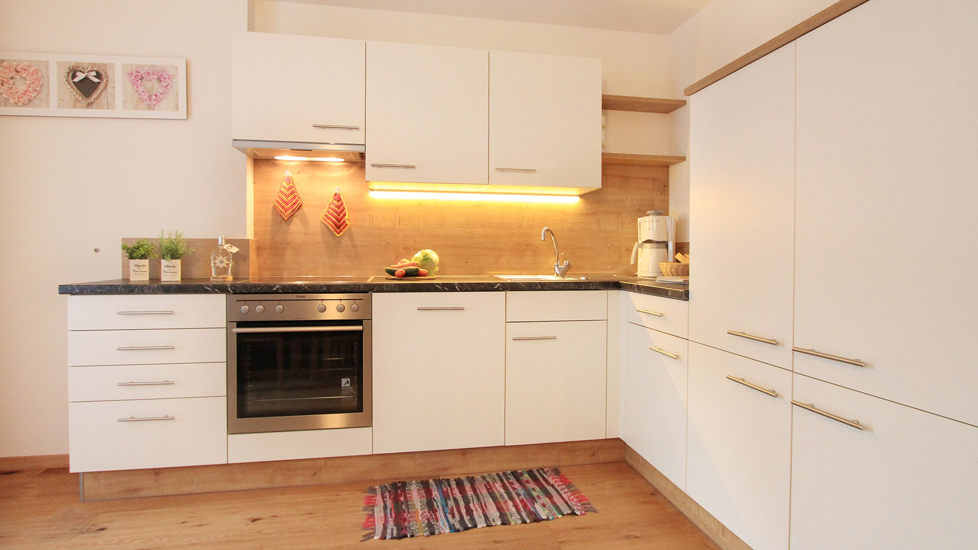 • Komplett eingerichtete Küche mit Spülmaschine, Toaster, Wasserkocher, Mikrowelle, Elektroherd, Backrohr, Mokka, und Kaffeemaschine. Alle Kochutensilien sowie Geschirrtücher sind vorhanden.