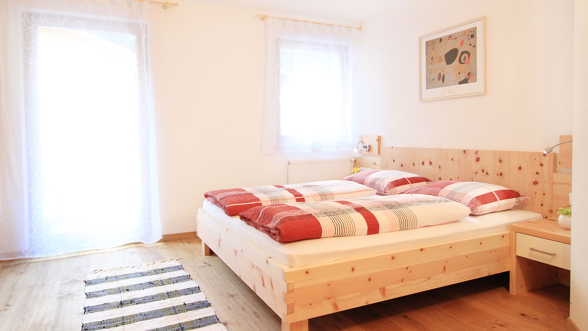 • Schlafzimmer - tischlergefertigte Einrichtung aus Zirmholz; Bettwäsche inklusive